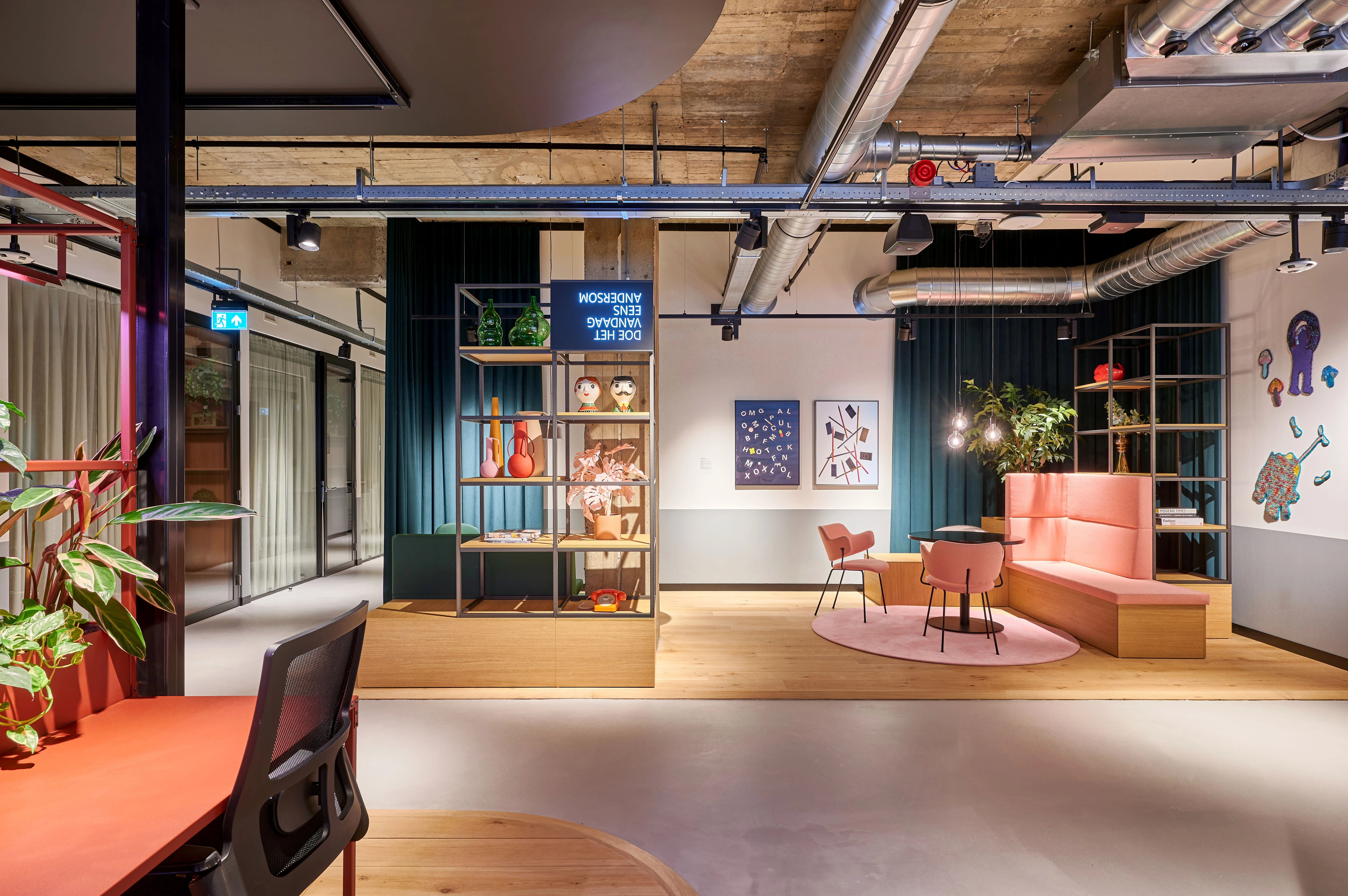 Yannic: Ik word ook blij van de vloer in de pantry en toiletten. Het is een vloer van The Good Floor, die maken van geoogst plastic een nieuwe vloer. We hebben alle medewerkers van ING Rotterdam uitgenodigd om in de Maas plastic te vissen en dat is verwerkt in deze vloer. De medewerkers konden tijdens de verbouwing komen meekijken en zagen de vloer waar ze zelf voor hadden gevist. Zo creëer je een ambassadeurschap.